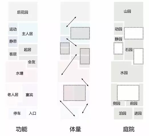 建筑师马科元,根据矩形的地块和主人的需求,梳理出4座建筑和10个院子。