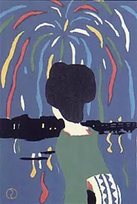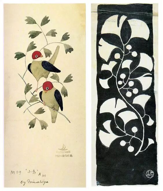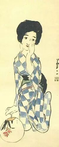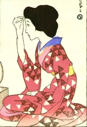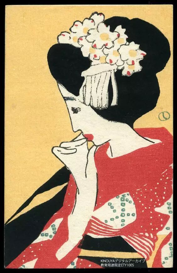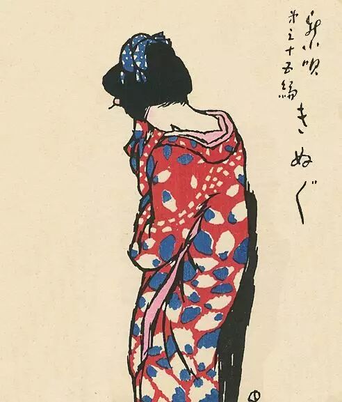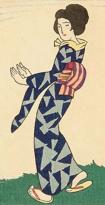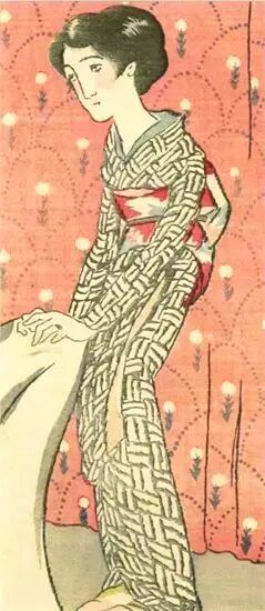 更多的是抽象几何纹样,喜爱概括色块,擅长装帧设计的竹久梦二,也设计过和服的纹样。