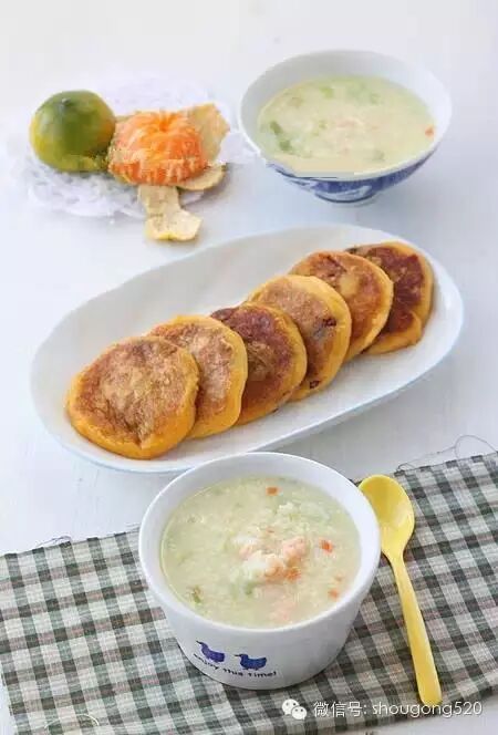 15、炒肉末放剩米饭葱姜锅底熬成粥,最后放芹菜叶末再调味;熏鱼;煮蛋抹自制辣酱;用南瓜丝和葱花面粉鸡蛋做了几张柔软的煎饼;还有紫葡萄。