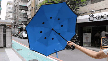 湿漉漉的雨伞怎么好直接上手卷起来呢?BePro是一把一键自动反向收起雨伞,按下把手上的机关按钮,伞面会瞬间收合,把有雨水的一面包裹在内,避免沾湿衣物或其他物件。
