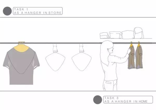TakeAway 的使用方式浅显易懂,它们可以在服饰店被当作衣架使用,然后购买衣服的消费者,可以将它整袋直接包好提回家,打开房门,挂在满到快要溢出来的衣橱里,衣服就能一件件整齐地摆好,一目了然,避免出门前找衣服就花了半小时,而且 TakeAway 还能重复使用,既方便又环保。
