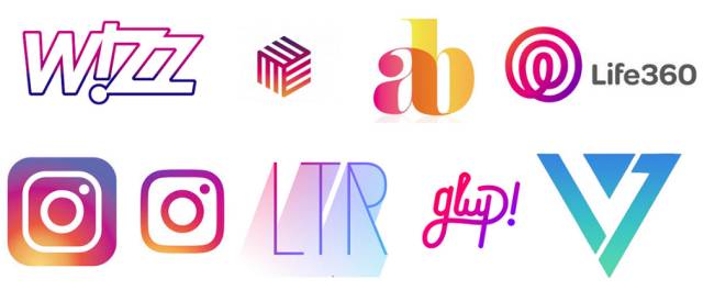 渐变色是现在最大的趋势之一。开始于 2016 年,并随后获得迅速增长,像 Instagram这样响当当的品牌,也决定将自己的logo从扁平单一的颜色变成多色渐变。从logo到按钮或是图片叠加层,这一趋势无处不在。
