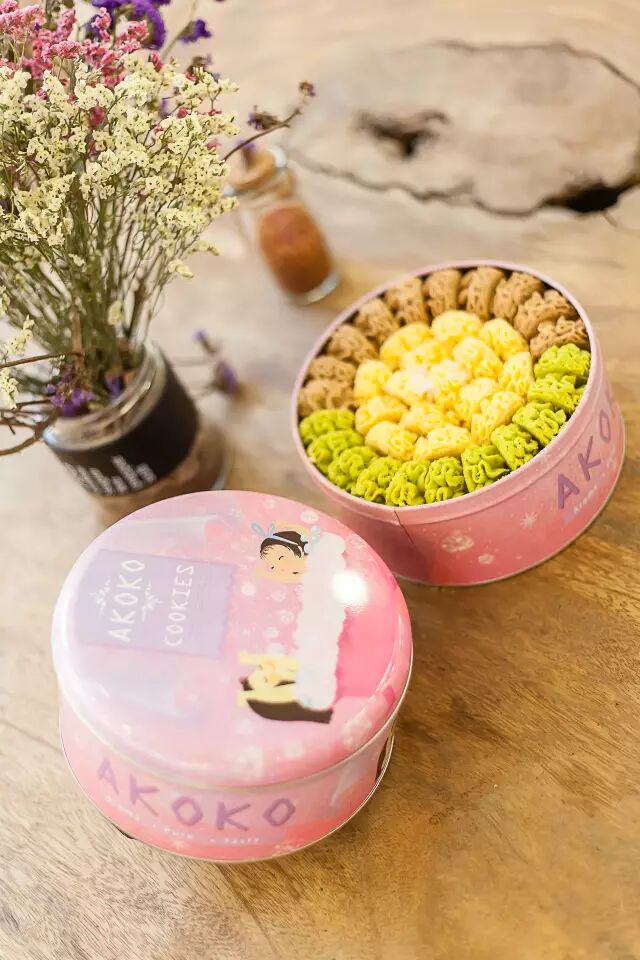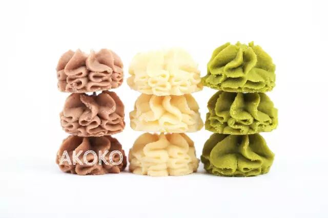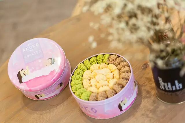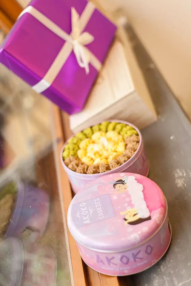 AKOKO一直坚持用比其他牌子贵百分之四十的法国发酵黄油、西海岸的“盐之花”、法国法芙娜可可粉、日本进口抹茶粉,再加上联合创始人小花的独家配方,喏,一款香酥可口人气爆棚的曲奇就诞生了。