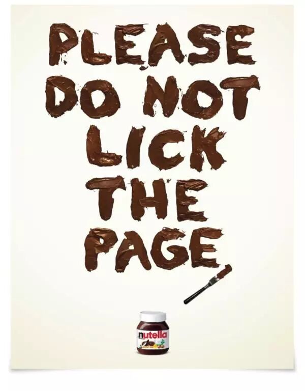 Nutella的这则广告一眼就令人觉得十分“Nutella”。 凌乱的个性化字体表现出Nutella品牌的活泼俏皮感,并造成一种吸引眼球的十分有趣的效果。 除此之外,文字本身运用的逆反心理发挥了巨大作用。