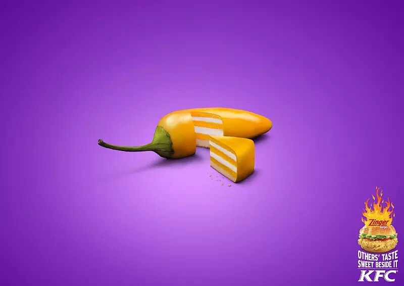 注意,这里没有任何标语或其他太明显的解释表明“酱太辣,吃了会出汗”。广告的含义留给观众自己理解。 试着把你的广告想像成一个好笑的笑话,如果它足够巧妙和完整,你便完全不必进行解释。
