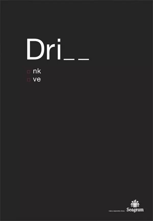 Seagram的这个设计使用简单的排版、强有力的文案以及强烈对比的配色来形成一条十分具有影响力而又普通得像是日常消息的信息,并不需要任何额外的图像来提升其有效性。