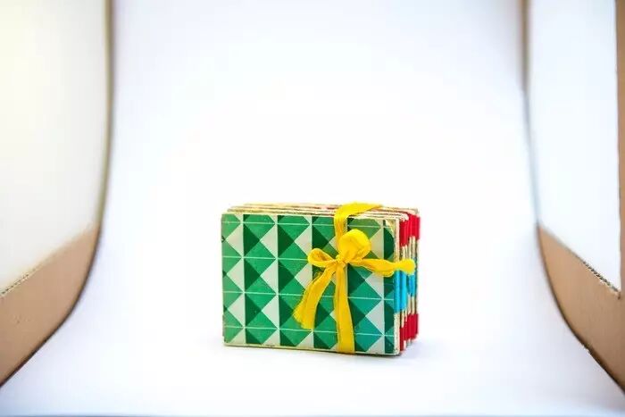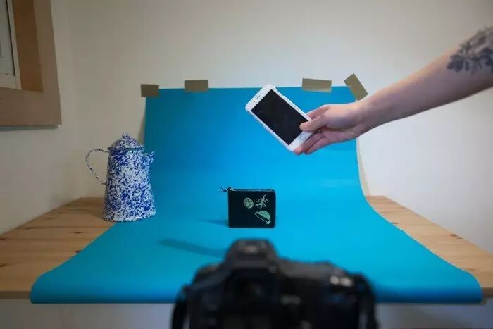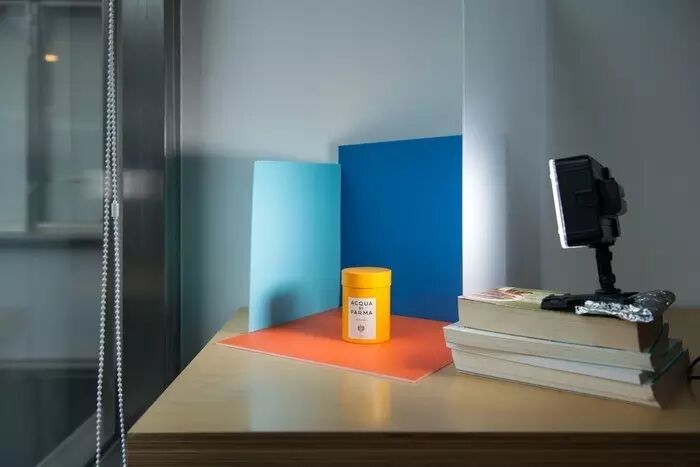 在商品照拍摄的各种技巧中,色块拼接是一种既速成、又相当抓人眼球的妙招。小编在这里选用了泡沫板是因为方便站立,不过其实使用纸材的效果也很不错。