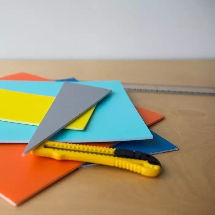 ▲首先,淮备几张彩色的泡沫板,随意裁切成各种大小、形状。