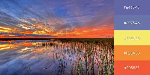 一个可以在线创建信息图形、演讲的工具——Visme——的设计团队,创作了一份很漂亮的色彩搭配清单,共 50 个色谱。即便是饱和度很高的冷暖色调组合,看上去也毫无违和感。