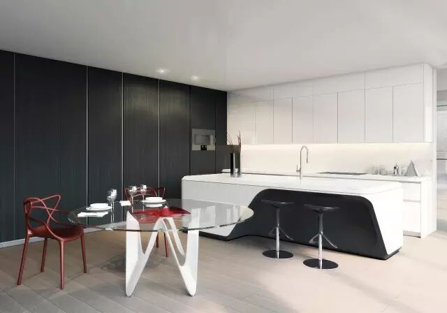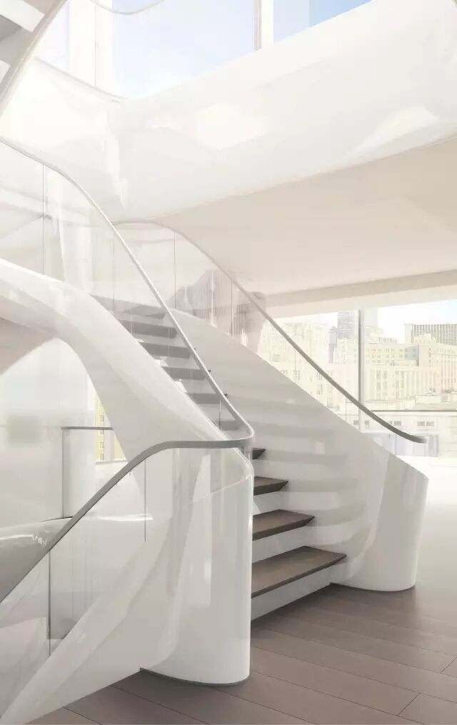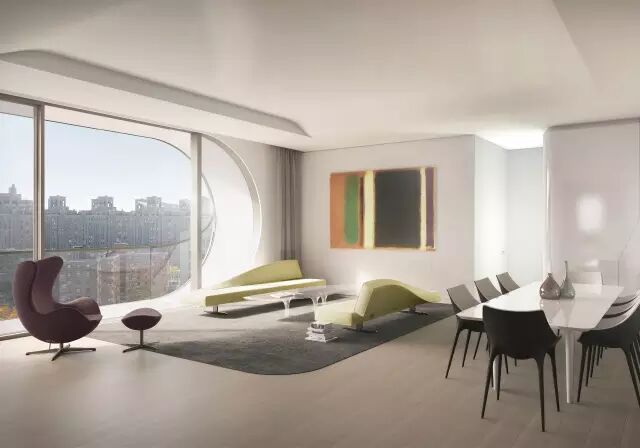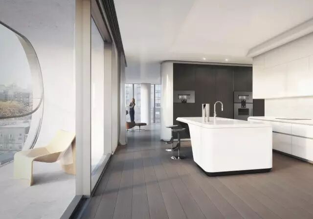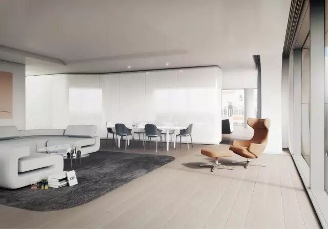 39个住宅是独立打造的,内部装饰无缝地融入了建筑外观的独有特质,每个住宅都有一个由Zaha Hadid设计的定制雕塑元素,在优雅的乳白色表面。