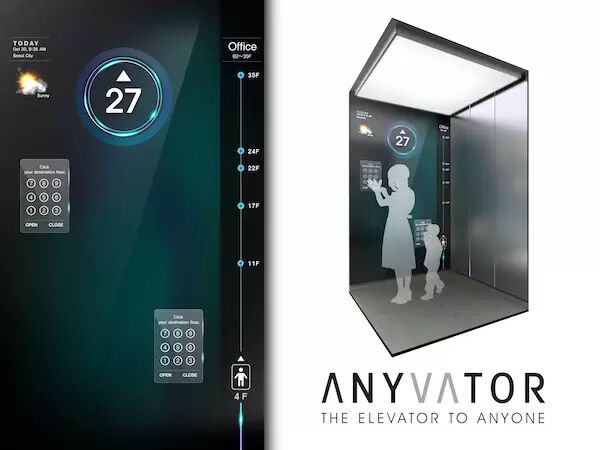 这是一座让数名使用者皆可同时在视线高度输入目的地的电梯。一般而言,因为电梯按钮通常固定在成人的标准高度,对较矮的使用者便存有空间上的限制。ANYVATOR 电梯装有一大型显示萤幕提供多点触控,使得多人能同时输入不同目的地。另外,使用者以手掌碰触墙上任一处时,就会出现一个输入目的地的萤幕。此外,装设在右方的显示萤幕还提供使用者各式资讯,包括所在楼层、时间及气象资料。