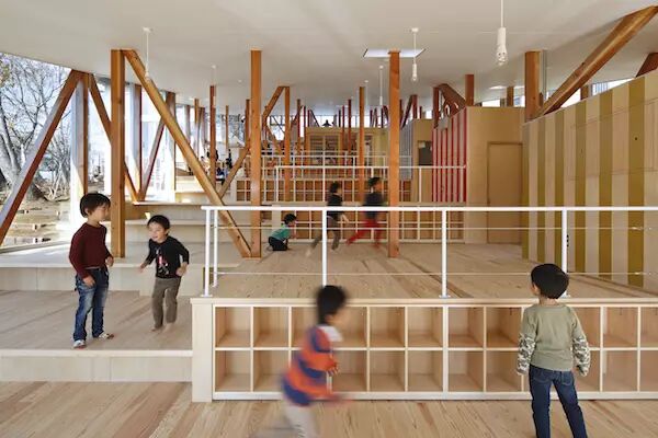 位于千叶县佐仓市的 Hakusui 托儿所计画容纳六十名学童,一间当地专门打造年长者照护设施的社会福利公司,诚友会,为了这项专案与我们联系。这项计画的主要概念来自于一个想法:「托儿所是一间大房子。」本址南端位于周遭山林环绕的浅坡之上,我们将校园房间设计为大型阶梯形式,将地形融入善用。
