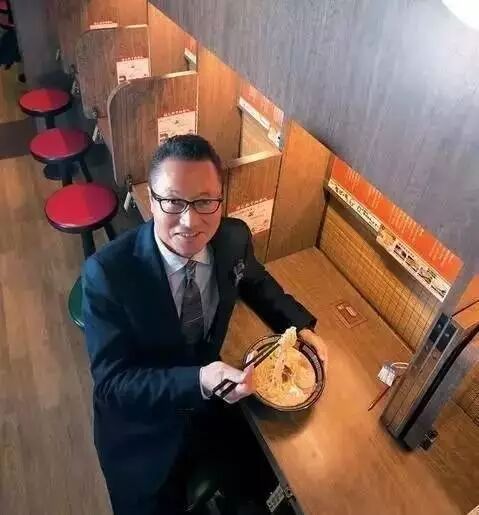 “好好吃饭”,吉冨学说这是他坚持吃拉面时,一人一格独立空间的原因。