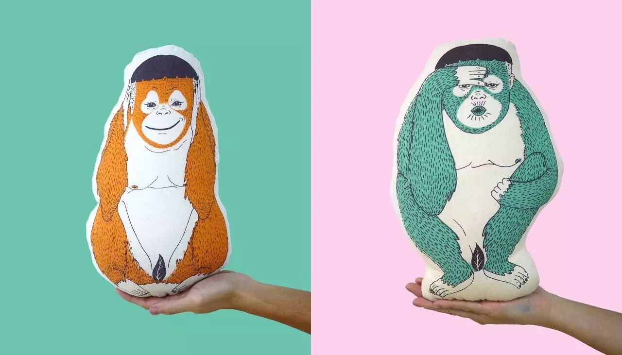 仔细看!猴子抱枕和 emoji 🙈🙉 一样。