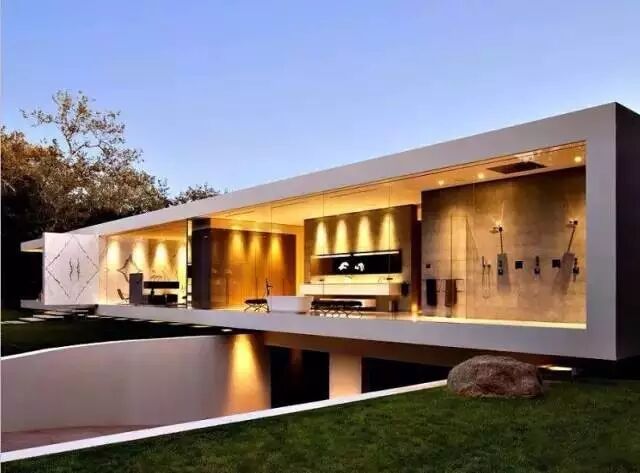 整套房子除了必要的承重墙之外,立面全为玻璃幕墙,所有的结构元素几乎都被消减掉了。