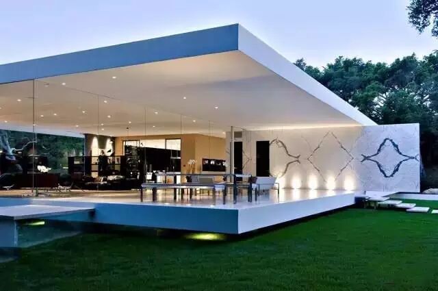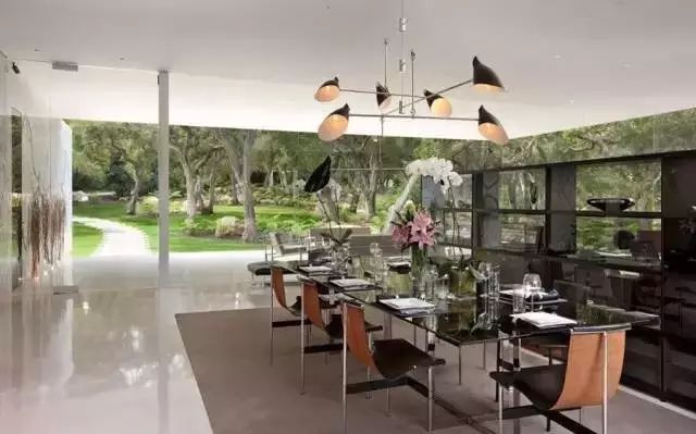 房子面积约1300平方米,周围是一片郁郁葱葱的橡树林,由于没有实体墙的支撑,透过玻璃窗户可以将外面的景色一览无余。