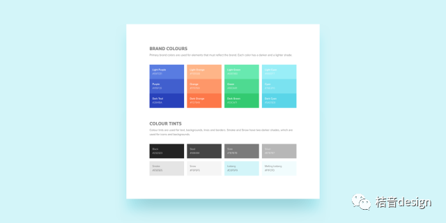 6大部分中的首要的是一致性(Identity)。在这一层级中我们定义一个项目的核心品牌元素。字体和排版、主色和辅助色在这里都会被详细规定好。定义之后,这些规则将会在整个项目中贯穿执行。