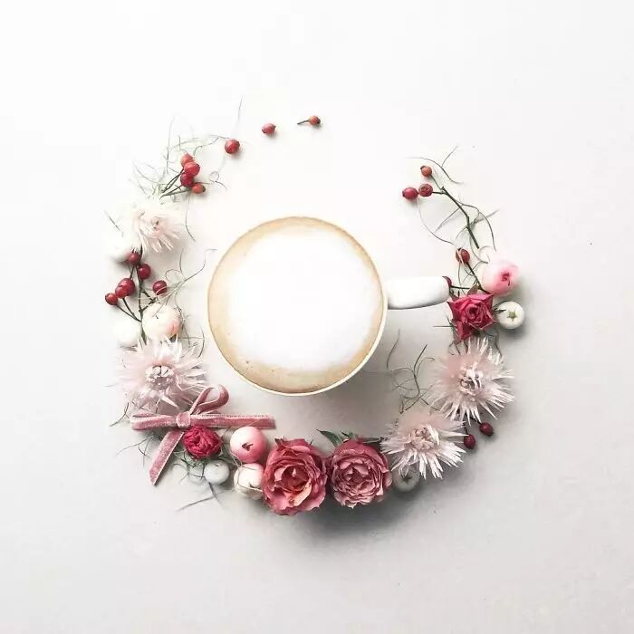 这可能是铺主见过的喝咖啡喝得最令人赏心悦目的妹子了,La Fee De Fleur ·每次喝咖啡都会用花朵装饰一番然后拍个照片发朋友圈 ···