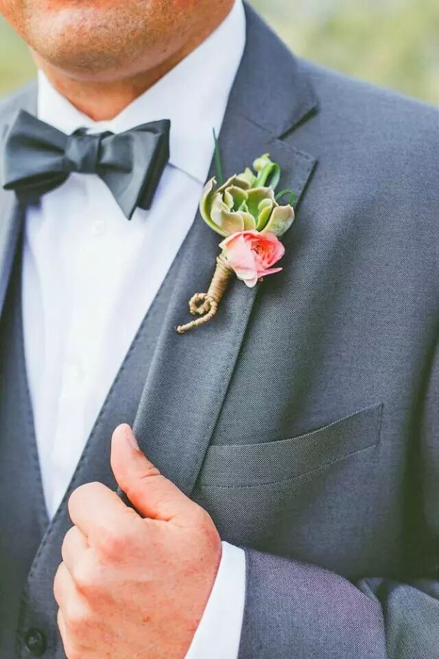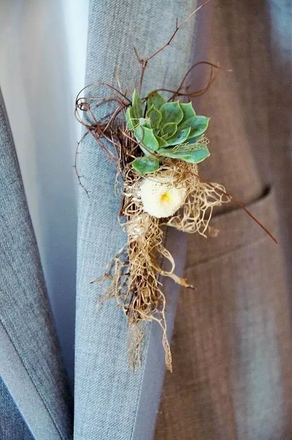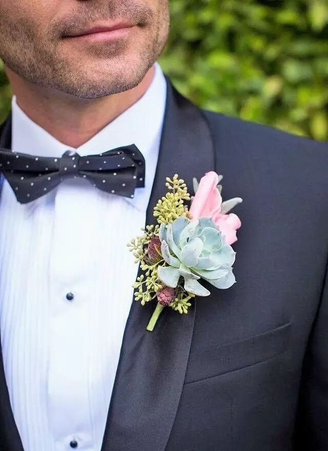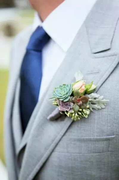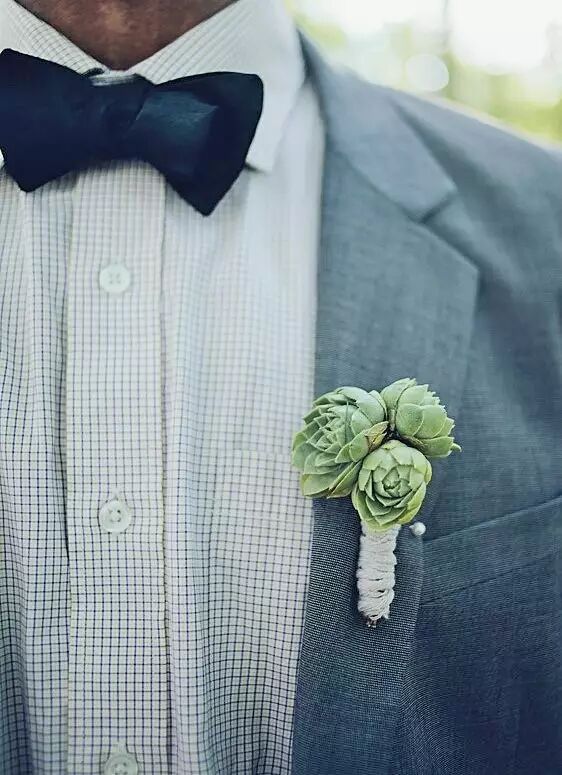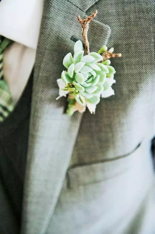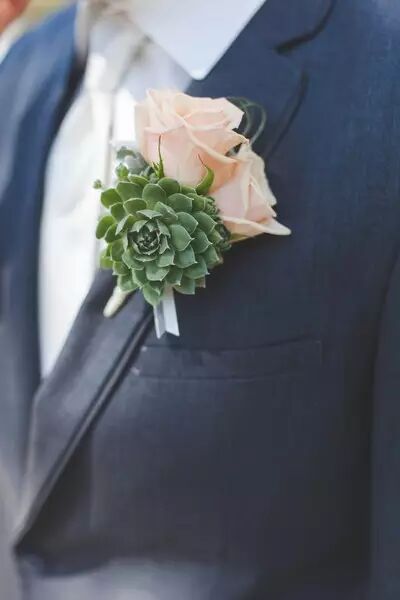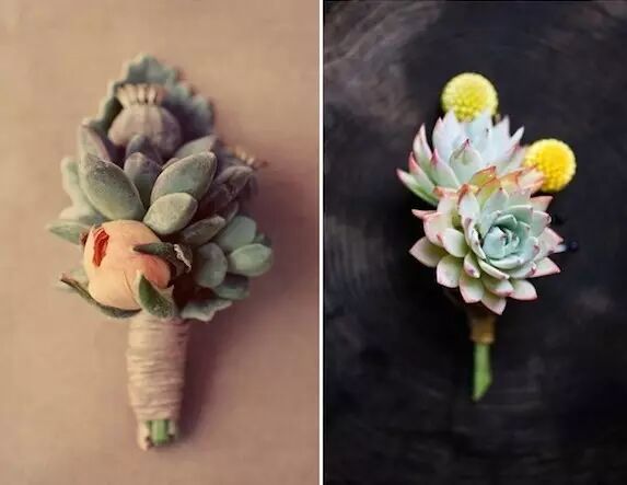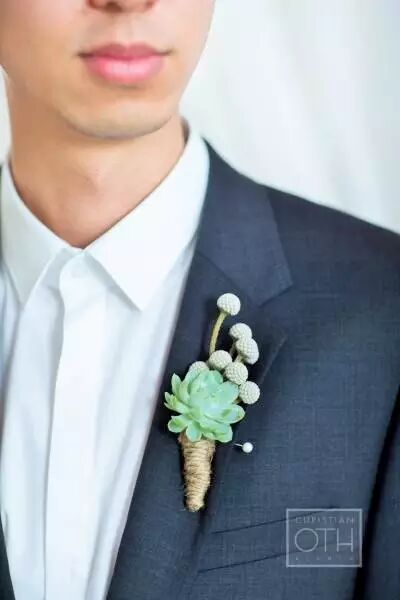 别致的多肉胸花散发着小清新的味道,为婚礼也增添了几分自然的气息。