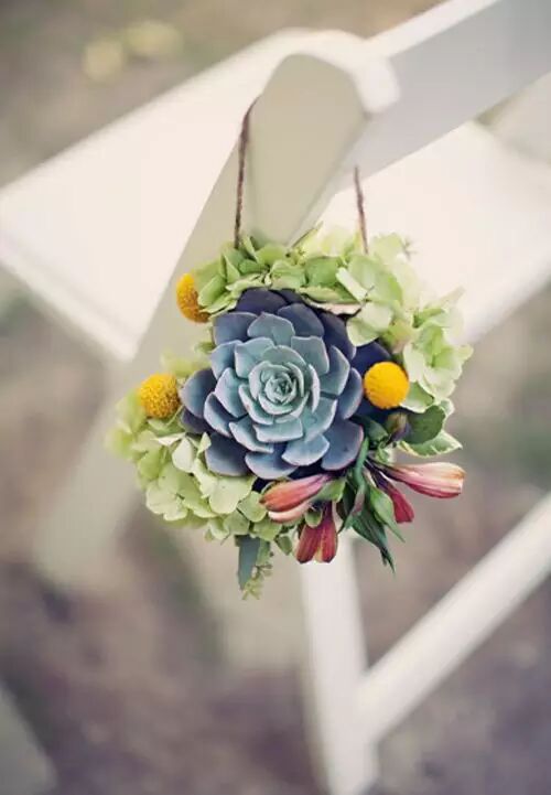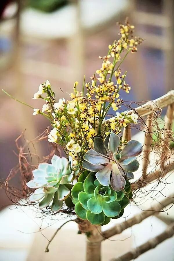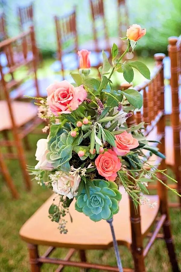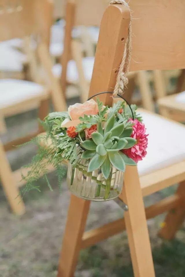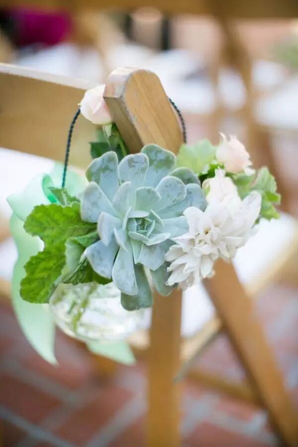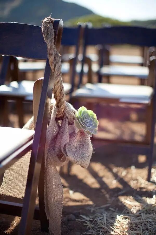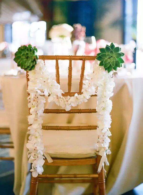 一场完美的婚礼当然不能放过任何一个细节啦!椅背上加入多肉元素之后也变得格外吸引人。