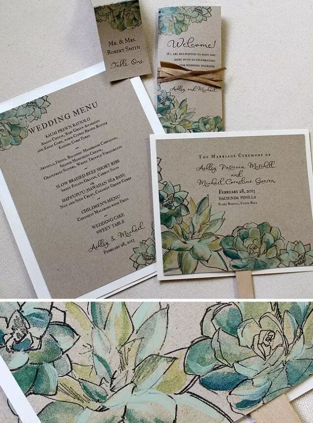 宾客们打开这样一张多肉元素的请柬,就像是迎面拂过一阵清新自然的凉风。
