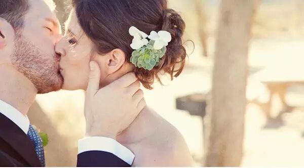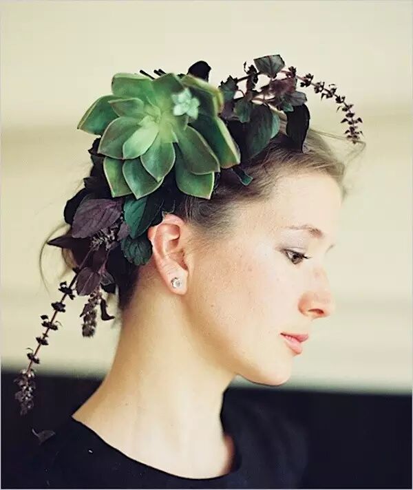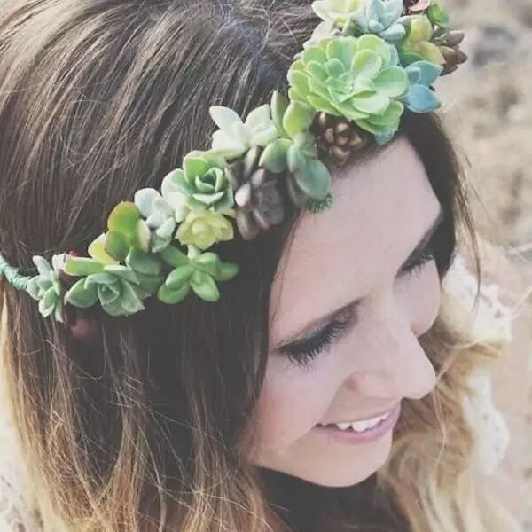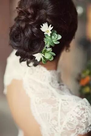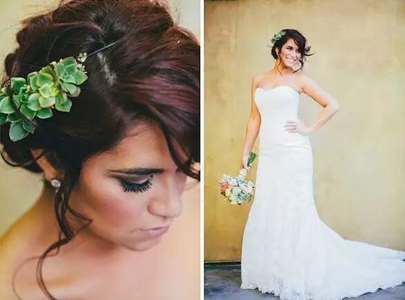 新娘戴上多肉的装饰,仿佛是从大自然中走出来的精灵。