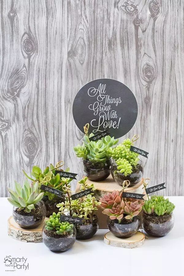 多肉植物易于打理,是非常适合种植的植物。在婚礼结束之后,不妨把它作为回礼赠送给宾客们。