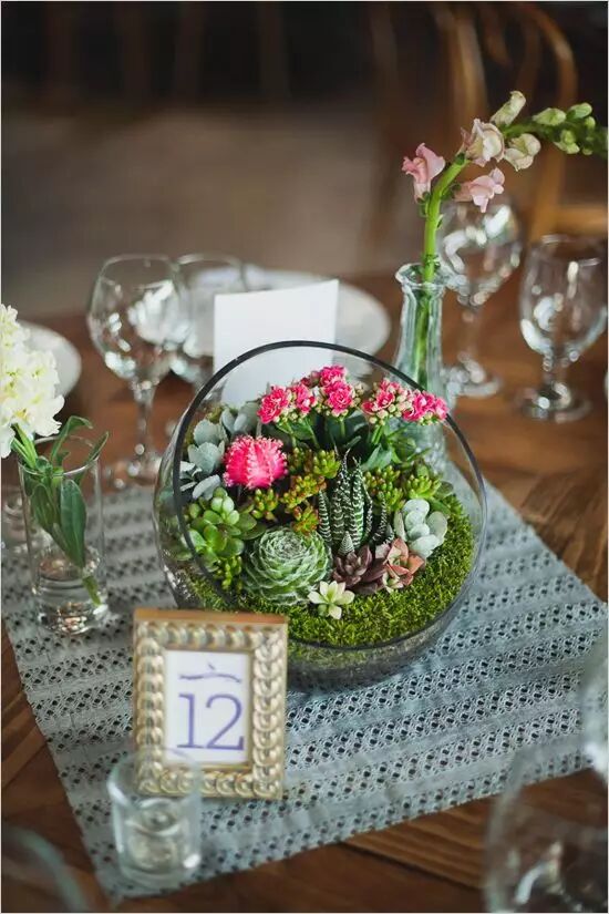 婚礼现场出现的一小株多肉或是一大片多肉都会给宾客们带来惊喜!