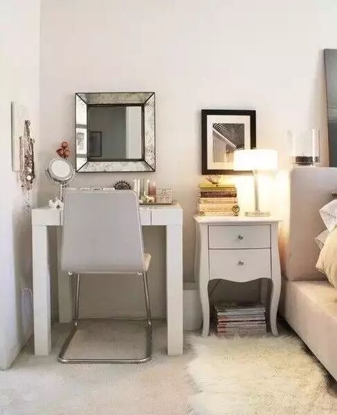 也可以试试将梳妆台和床头柜并列摆设噢,