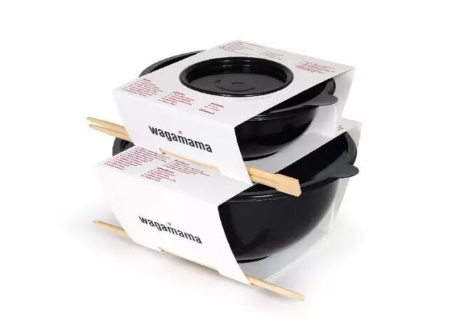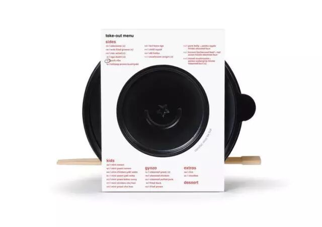 Pearlfisher 的设计策略很直接,怎么才能让顾客在家里也能享受到如餐厅用餐一般的体验?整个外卖套装看起来像是复制了 Wagamama 餐厅内的黑色圆状碗,可以将其堆叠。