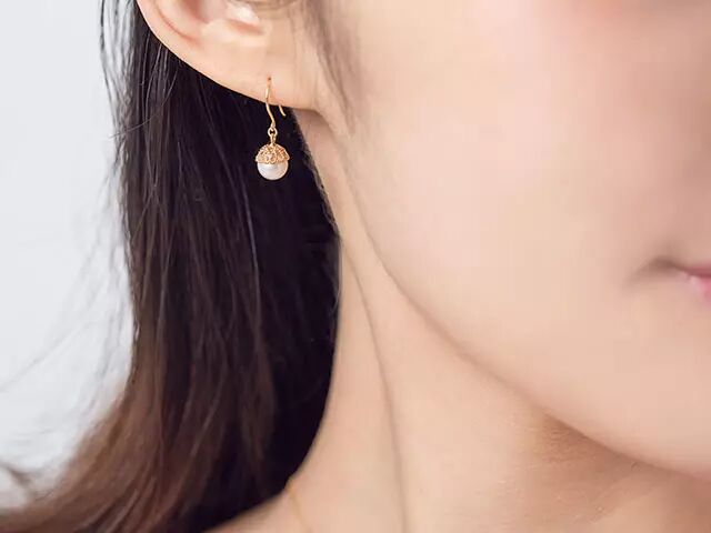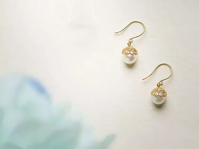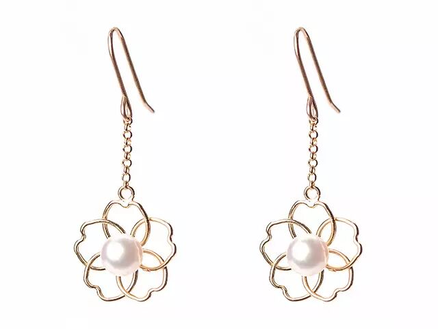 而这款樱花珍珠耳饰同样也是用5片10K金打造,与项链完美的搭配在一起,精巧复古。