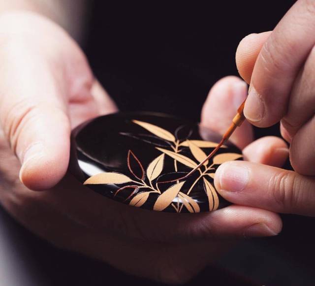 他的朋友说,他常常琢磨着自己制作各式小玩意儿,钥匙圈也好,胸针也好,都是漆器。他的莳绘师妻子也说,下了班回家,他有时候会跟她一起合作,探讨一件漆艺作品的做法。这似乎是一个匠人最完美的生活方式了。