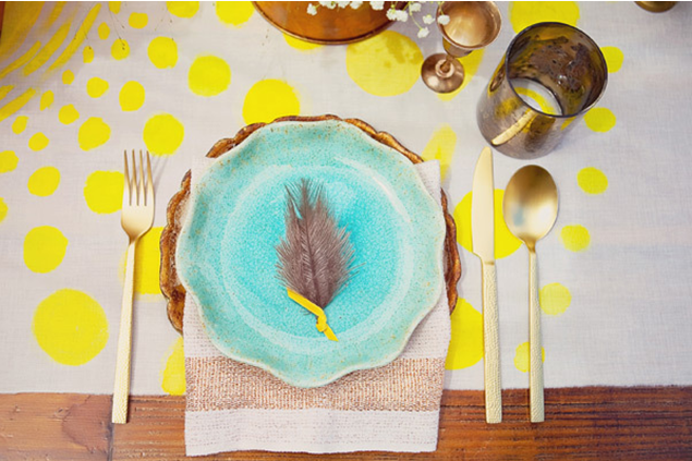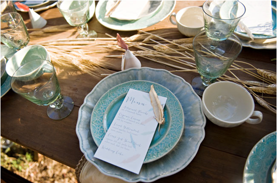 植物算得上是婚礼的常客,在餐桌上出现也并不稀奇,它永远是那个最容易出彩,也最经典的那个。把植物收进餐盘,要切记一定是取其精华,不要搞得满满当当,遮盖了餐具的美感。