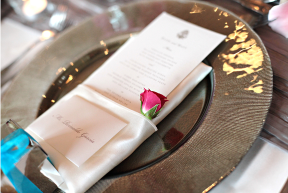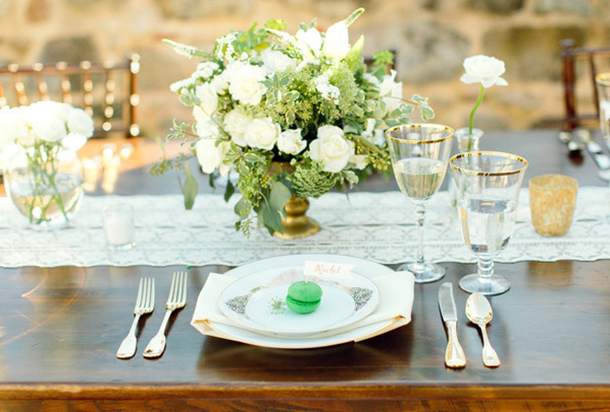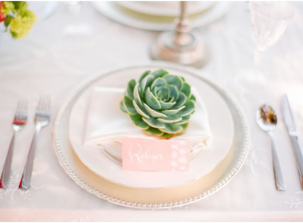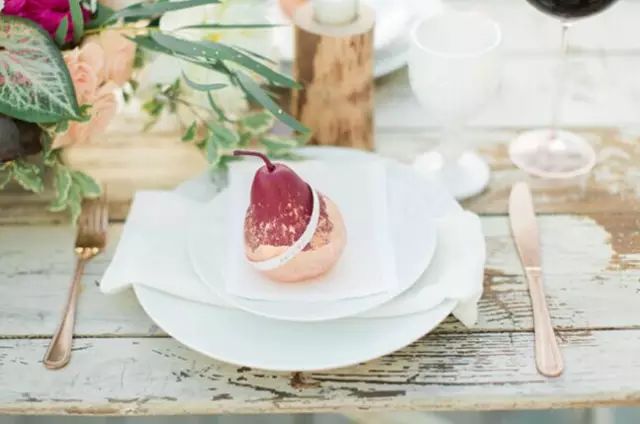 在宾客的餐盘中提前放入一小枚甜点,让大家在落座时就提前尝到你们爱情的甜蜜,这个招数屡试不爽,毕竟没有人会拒绝美味的东西。