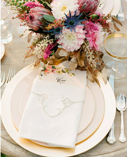餐巾的存在是理所应当的,想要对你的餐盘不做过多的修饰,那好好鼓捣鼓捣餐巾就变得尤为重要。精心的搭配层次或为每一位宾客绣上名字都是你该做的事!