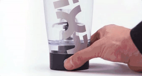 在没有冲调机器的场合,用普通的随行杯冲上一杯饮料就需要使劲摇晃一阵子才行,如果没有额外的搅拌工具,粉末难以彻底溶解还有可能喝到结块。为了让健身人士能够随时随地喝到冲调饮料,纽约的 PROMiXX 设计团队研发了一款名为 MiiXR 随性搅拌水杯,它内置的 X 形搅拌刀可以在五秒以内完成冲调。位于底部的马达采用了独特的防滑磁性锁,当你不需要搅拌功能时就能轻松地卸下。在高级版 MiiXR+ 中,水杯还配备了电池可以作为移动电源使用。它的众筹最低价为 25 美元。