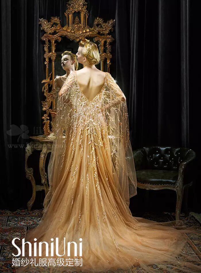 相信能驾驭这款婚纱的新娘,一定是个绝世美人儿。