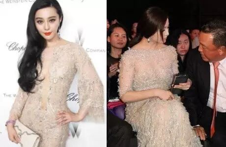 裸色礼服将范爷肤色白皙的特点完美诠释,也将范爷微胖的身材勾勒的楚楚动人。