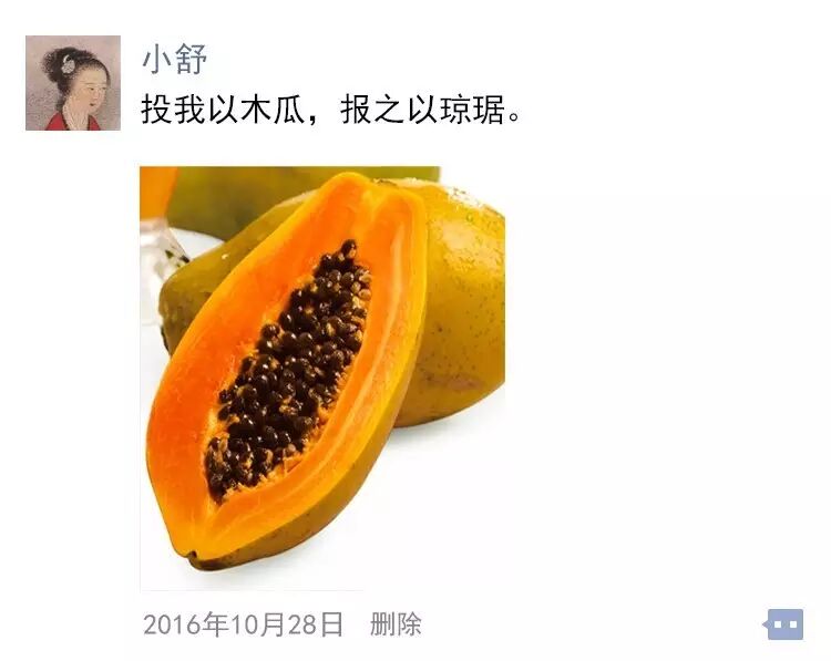 小舒心想:竟然送我木瓜,一定超级爱我。于是把祖传的玉送给帅哥了。