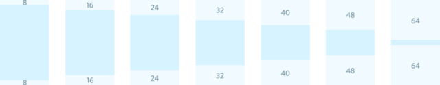 坚持8dp增量,我们可以画出许多间距值,可以使用它来设计每一套产品组件和布局。