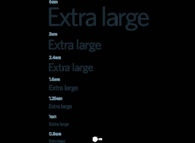 - 默认(1 em)标准文本用在网站、界面等的许多地方。浏览器默认字号是16px。