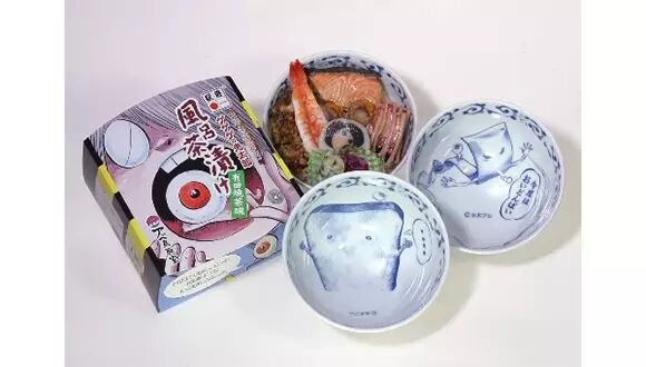 鸟取县是著名日本漫画人物“鬼太郎”的作者水木茂的故乡,很多游客来到这里追寻浓浓鬼太郎漫画情节。这款“鬼太郎”便当采用的是日本著名的有田烧,并在上面绘制与漫画相关的图案。这款便当不仅是美味的茶泡饭,还是《鬼太郎》Fan的必收之物。