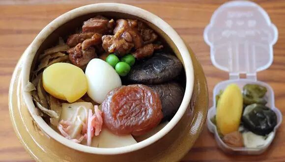 1958年发售以来,这款用陶瓷容器装盛的能够保温的便当就拥有了不减的高人气。便当采用利尻海带煮制的水来烹饪越光米并以酱油调味,同时采用来自当地山中的9种颜色鲜艳的食材进行搭配。