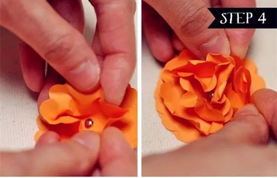 4.用手将每一片纸片弄皱折起,弯成花瓣自然的形状。