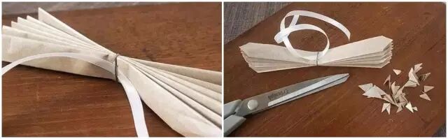 1.将几张纸合在一起反复对折成风琴状,用细铁丝固定在风琴状纸的中央部位。