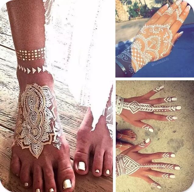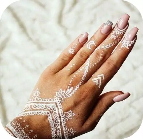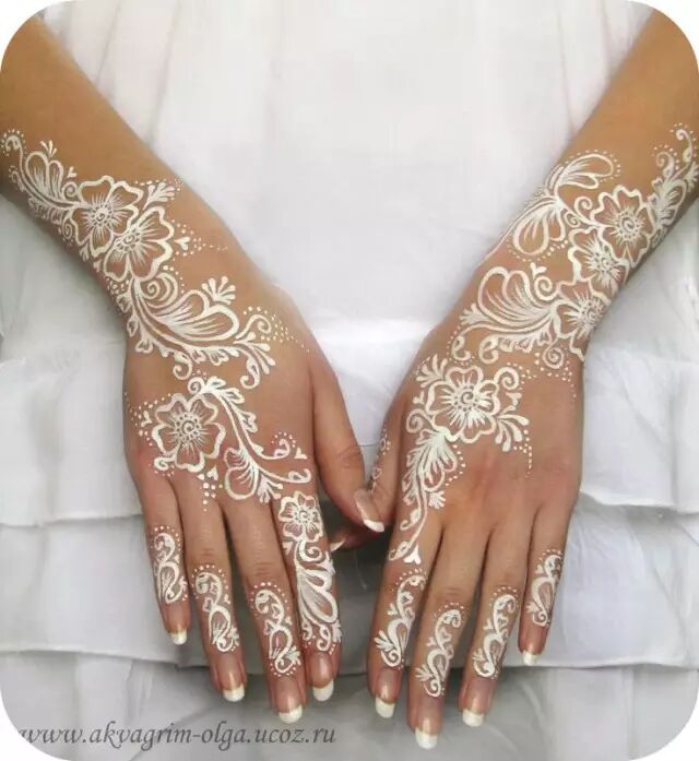 被阿拉伯妇女钟爱的Henna手绘艺术,如今也不再是人们印象中的黑压压一大片。精致的白色Henna ,仿佛和洁白的婚纱融为一体,成为独一无二的婚礼装扮。