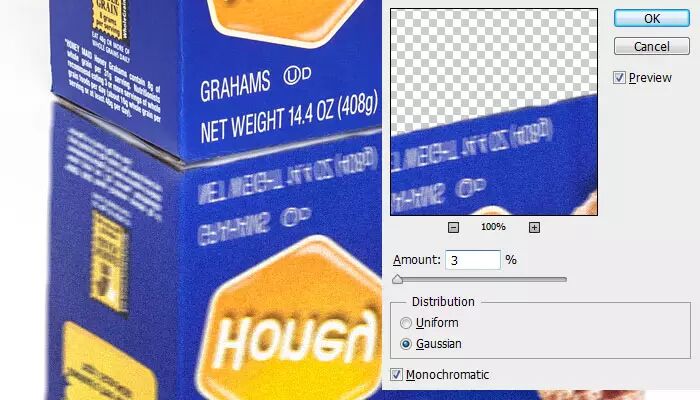 8、点击滤镜> 杂色 > 添加杂色。设置数量为3%,选择高斯分布,选择单色。