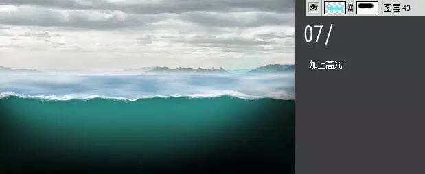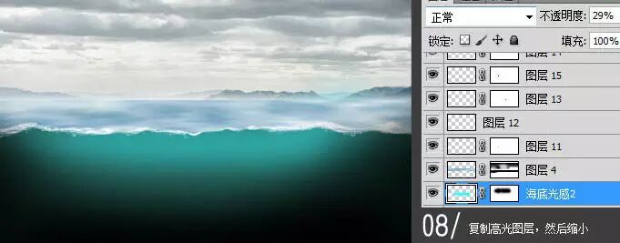 12、加入光源,海面调暗,叠加颜色。