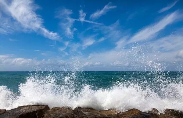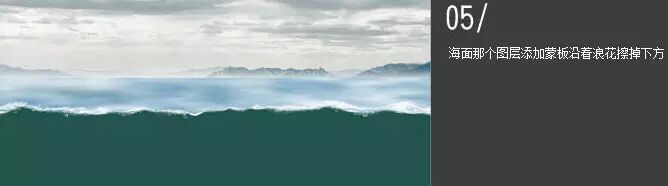 5、海面那个图层添加蒙版,沿着浪花擦掉下方。