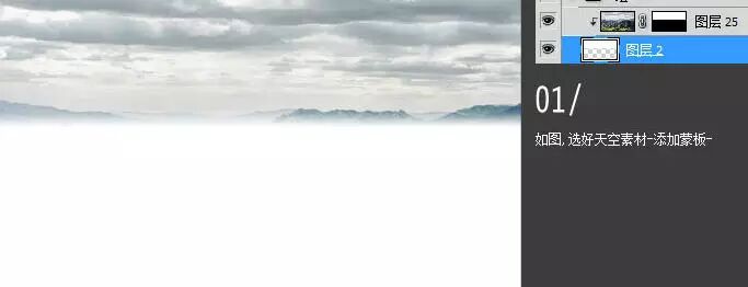 1、如图,选好天空素材,添加蒙版。